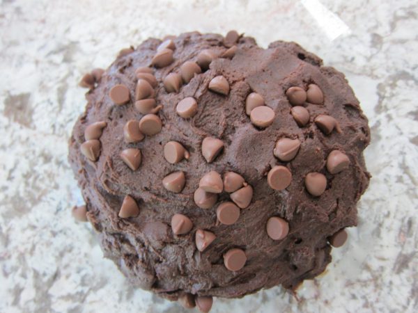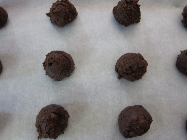 - Using a scoop or tbsp, make cookie balls and top with additional chocolate chips to add even more of a fudgy effect.